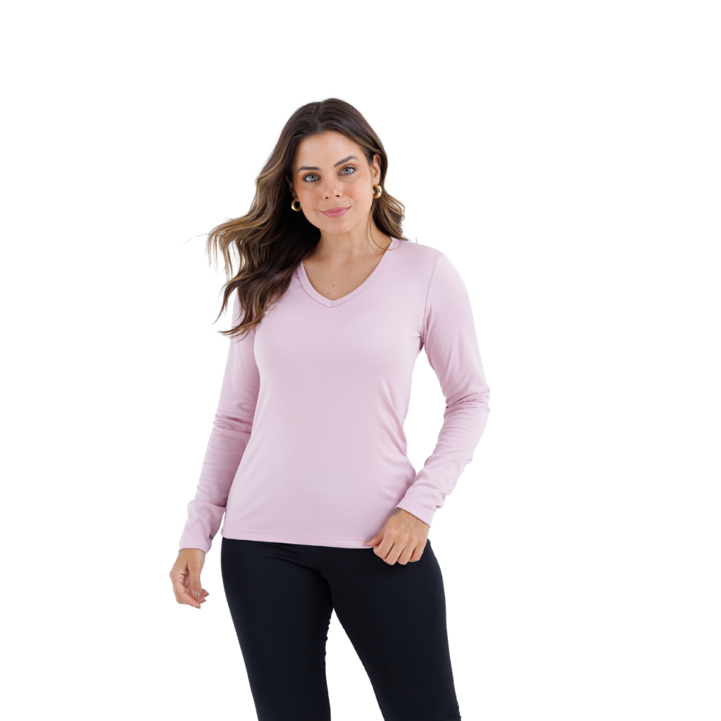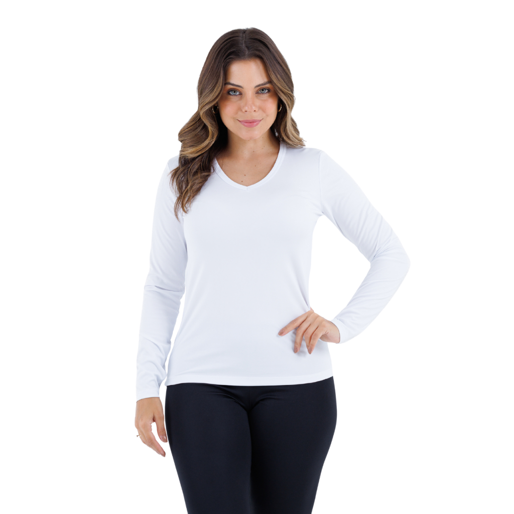 Blusa Segunda Pele Térmica Feminina com Gola V em Tecido