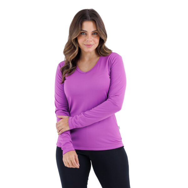 BLUSA SEGUNDA PELE TÉRMICA FEMININA COM GOLA V EM TECIDO FINO