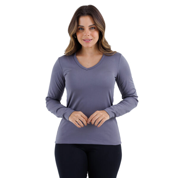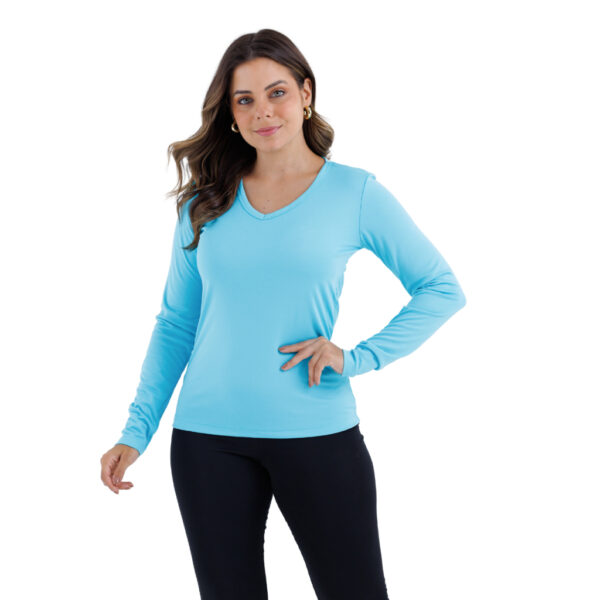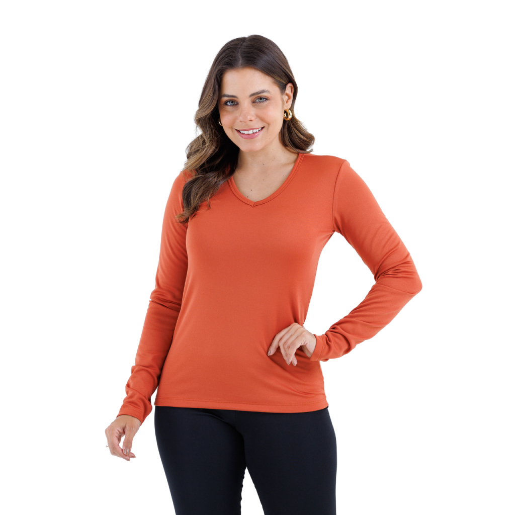 BLUSA SEGUNDA PELE TÉRMICA FEMININA COM GOLA V EM TECIDO FINO
